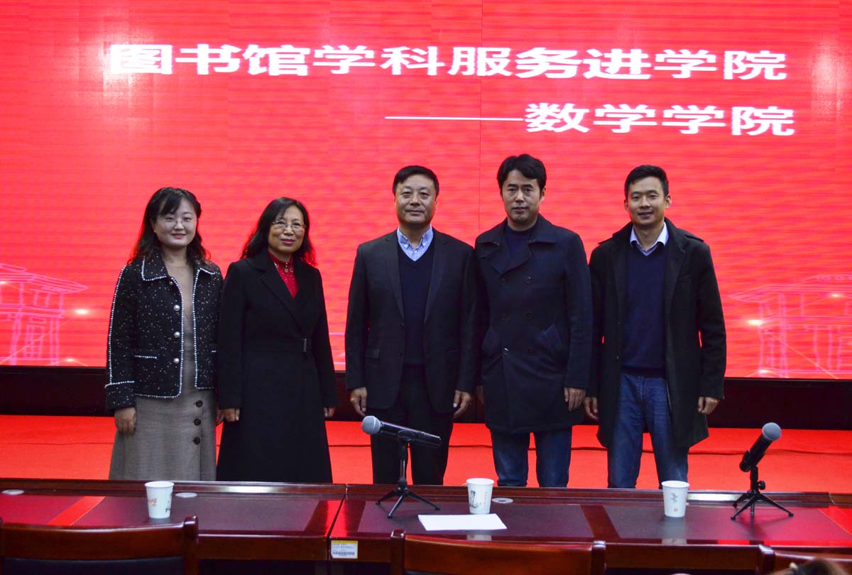 11月4日,图书馆“学科服务进学院”活动走进了数学学院。图书馆负责人弓培林、数学学院党委书记高航、副院长柴玉珍、副院长杨卫华及图书馆部分教师出席了活动仪式。活动仪式上,弓培林介绍了图书馆进一步深化学科服务的工作理念与总体安排,强调图书馆要进一步发挥信息素养教育、科研数据挖掘与评价的重要作用,为各学院的学科战略布局、重大科研课题的选题及转移转化、知识产权保护等提供全链条、嵌入式的信息服务,图书馆学科服务要实现从“事后”服务向“事前”、“事中”服务转变,在学校“双一流”建设中发挥重要作用。高航书记结合数学学院学科建设情况,对学生信息素养教育与学科信息服务提出了要求,希望图书馆与学院共同探索,深入合作,强力推进学科建设工作。