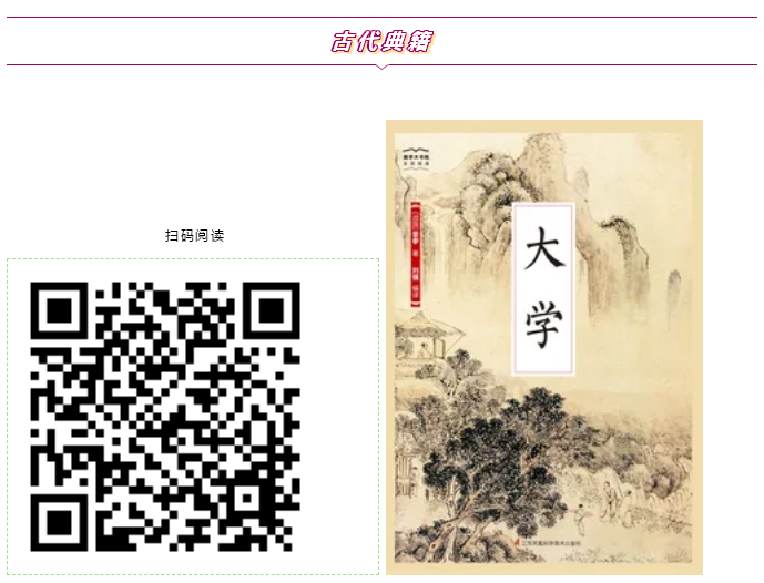 《大学》原本是《礼记》中的一篇。宋代人把它从《礼记》中抽出来,与《论语》《孟子》《中庸》相配合,便成了“四书”之一,是讨论古代教育理论的重要著作,宗旨在于弘扬光明正大的品德,在于让百姓仁爱敦睦、明理向善。