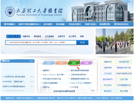第一步:登录“太原理工大学图书馆官网”(http://www.lib.tyut.edu.cn/)-点击“试用”数据库-选择“高校信息素养教育数据库”进行注册登录。