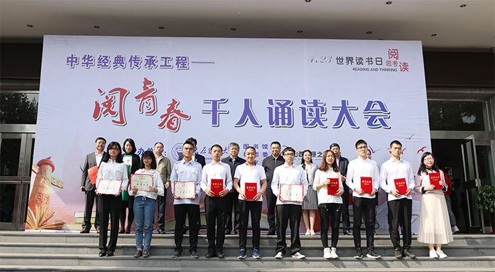 第24个“世界读书日”到来之际,4月23日下午,由我校和山西广播电视台共同举办的中华经典传承工程---“阅青春”千人诵读大会在迎西校区、明向校区同时举行。校党委书记吴玉程,副校长梁卫国;山西广播电视台党委委员、副总编辑罗庆东,山西健康之声广播陈湘等在迎西校区图书馆孔子像广场出席大会。我校党政有关职能部门负责人,省内著名节目主持人、朗诵家和师生代表等参加了诵读大会。梁卫国主持“阅青春”千人诵读大会暨2018年度“读者之星”颁奖仪式。