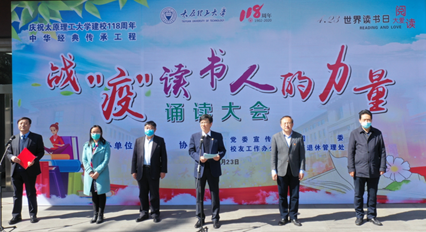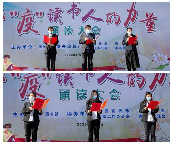 4月23日,是第25个世界读书日。当天下午,由党委宣传部、校团委、离退休管理处、校友办、图书馆联合举办的“战‘疫’,读书人的力量”主题诵读会在迎西校区图书馆前举行,副校长梁卫国及相关部门(单位)负责人与师生代表、2019年度荣获园丁“读者之星”和学子“读者之星”的优秀读者等一同参加了活动。本次活动也是118周年校庆系列活动的组成部分。
