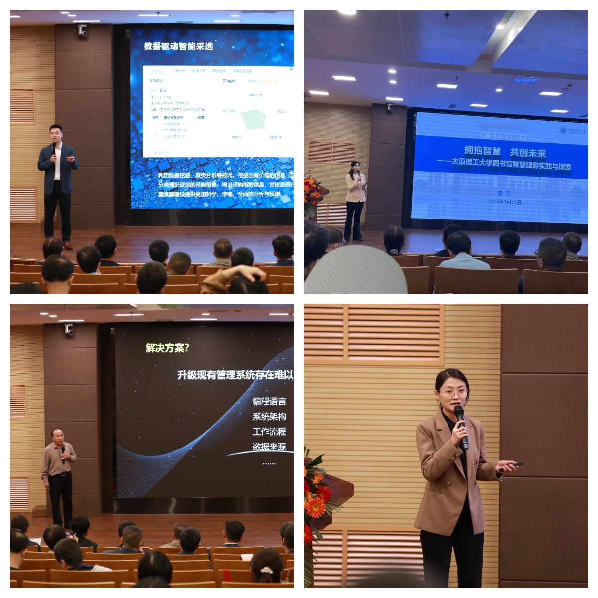 会议学术报告主要包括《基于微服务架构的智慧图书馆建设》《拥抱智慧共创未来——太原理工大学图书馆智慧服务实践与探索》《图书馆智慧化与智慧图书馆:目标、路径的选择》和《云舟知识重构服务平台助力未来学习中心建设》。
