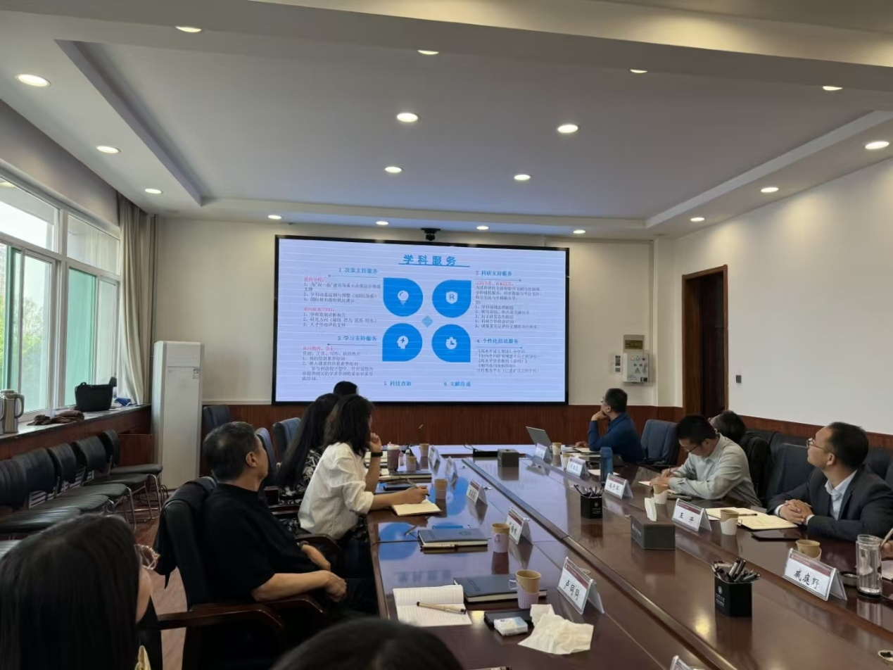 会上,图书馆介绍了学科服务团队支持学校“双一流”建设的工作情况,图书馆始终以服务学科和科研为核心使命,积极了解学院在科研、教学中的服务需求与痛点,不断优化服务流程,提升服务质量,为科研团队提供学科竞争力分析、科研领域热点前沿追踪、人才全方位画像、专利导航分析等深度服务。
