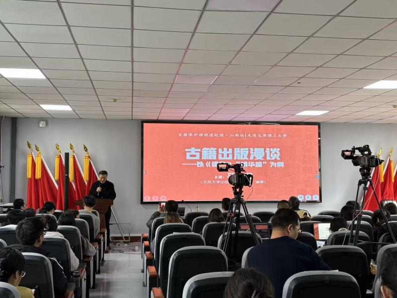 2025年11月18日下午,“古籍保护课程进校园·山西站”活动在我馆清泽报告厅成功举办。本次活动由国家图书馆(国家古籍保护中心)、山西省文化和旅游厅主办,太原理工大学图书馆与山西省图书馆(山西省古籍保护中心)共同承办。山西省图书馆副馆长李建强出席活动。我馆馆长弓培林主持讲座,我校一百余名师生参加活动。